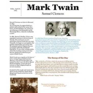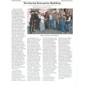 The Territorial Enterprise and Mark Twain Museum is currently under renovation. We look forward to having it open in the fall of 2026.